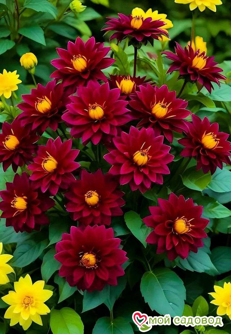 Оформление цветников и клумб: Георгины прекрасно сочетаются с другими однолетними и многолетними растениями.
